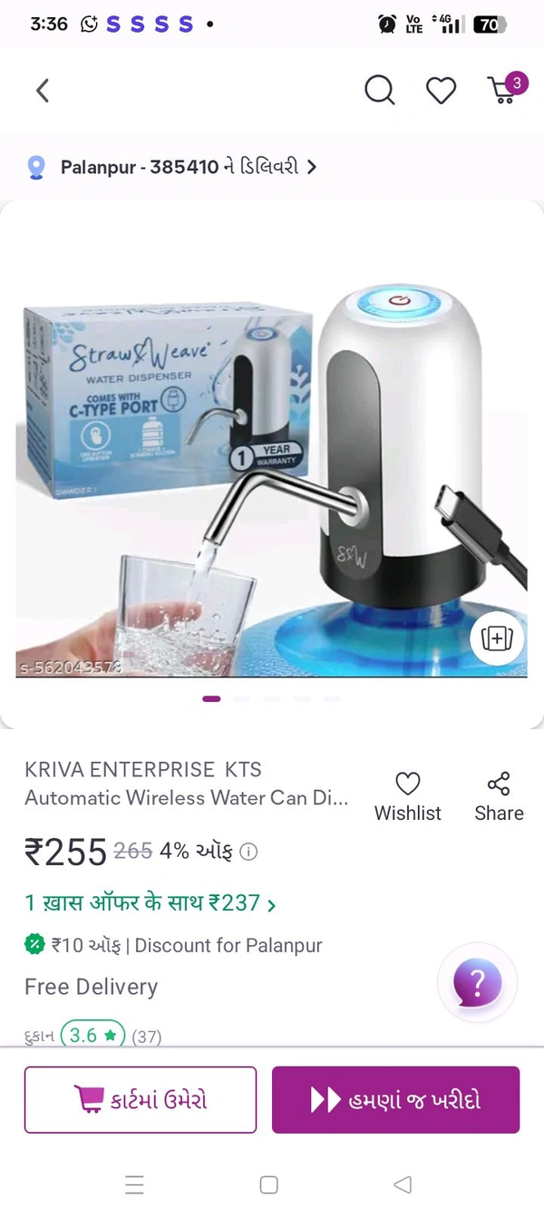 Product Name: Automatic Wireless Portable Mini Rechargeable Water Bottle Can Dispenser Pump Upto 20 Litre Bottle with USB Cable