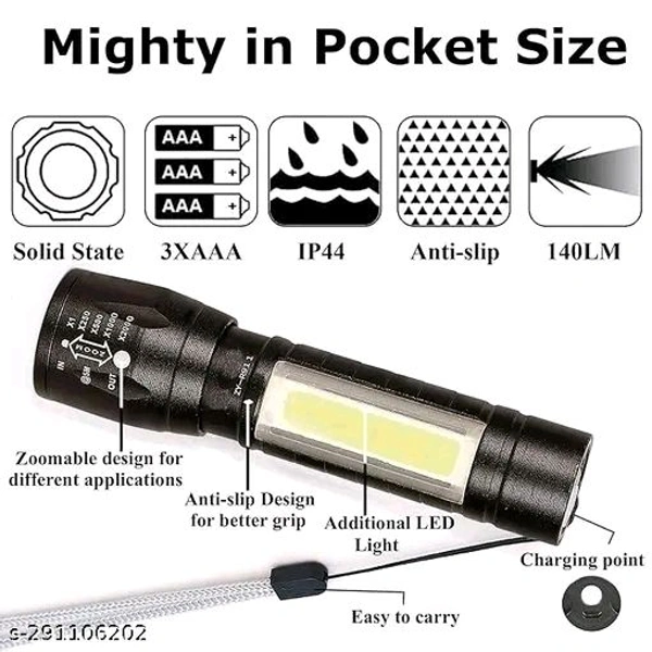 Tactical Flashlight + Desk Lamp with Gift Box Focus Zoom Torch Light with 3 Modes Adjustable for Emergency and Activities 2 hrs Torch Emergency Light (Black)
