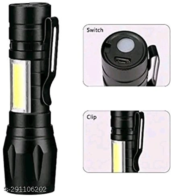 High quality aluminum alloy material with stable performance and long service time. Adjustable Focus ,you can Zoom in/out to adjust its beam. 3 LED light modes: push button On/Off trigger switch with XPE high light, XPE strobe, COB high light. Charged by USB port anytime, convenient and practical. Small and lightweight, and with clip, convenient to carry at any place you like. Unique processing design, with extrodinary outlook like a pen. Water-resistant,can use it in rainy day, but can not put it into water! Suitable for: Camping, Hiking, Cycling, Backpacking, Hunting, Fishing, Auto Emergencies, and Home Repair, family,and outdoor activity.