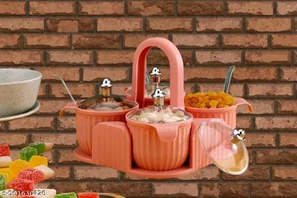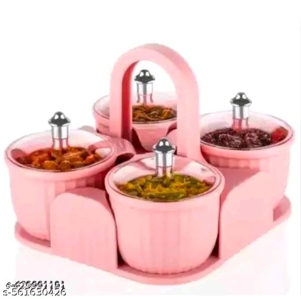 Name : Dry Fruit Box/ Masala Box/ Pickel Box 4 Compartment Airtightz storage Container with lid, Serving Box, Dry Fruit Tray, Masala Box for Kitchen(Pack of 1 Tray with 4 Jars)