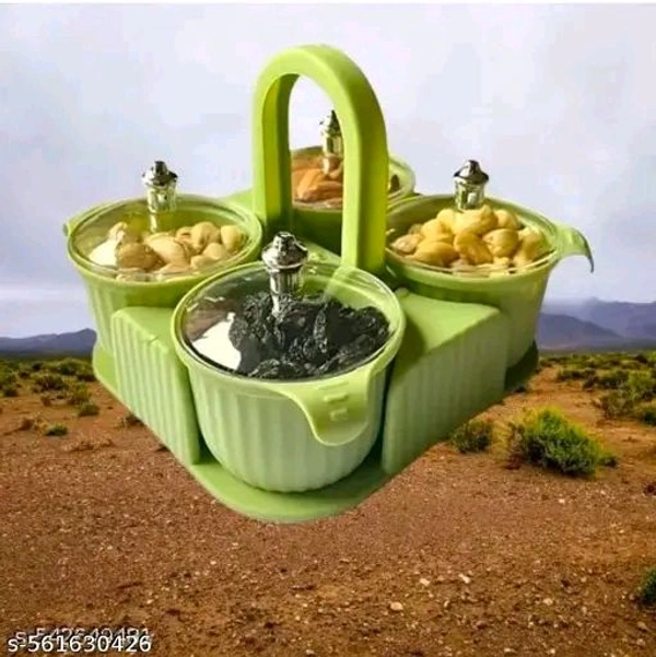 Name : Dry Fruit Box/ Masala Box/ Pickel Box 4 Compartment Airtight storage Container with lid, Serving Box, Dry Fruit Tray, Masala Box for Kitchen(Pack of 1 Tray with 4 Jars)
